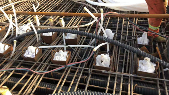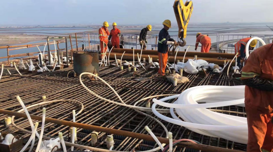 在觀摩現(xiàn)場(chǎng),首先由監(jiān)理單位總監(jiān)理工程師詳細(xì)講解了在建大橋的基本功能情況和設(shè)計(jì)理念,闡述了項(xiàng)目存在的難點(diǎn)和重點(diǎn),介紹了一批新材料、新工藝、新設(shè)備、新技術(shù)在漳衛(wèi)新河特大橋設(shè)計(jì)、施工過程中的應(yīng)用。隨后,全體參觀學(xué)習(xí)人員在施工現(xiàn)場(chǎng)進(jìn)行實(shí)地觀摩。工區(qū)觀摩學(xué)習(xí)人員前往漳衛(wèi)新河特大橋的駐地,一方面聽取了沿海高速漳衛(wèi)新河特大橋項(xiàng)目部的詳細(xì)介紹,另一方面與項(xiàng)目部工作人員就工程項(xiàng)目的組織實(shí)施重點(diǎn)難點(diǎn)和技術(shù)工藝措施等進(jìn)行溝通交流。