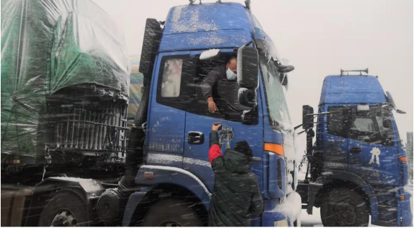 一個個暖心的微笑,一句句關切的問候,一杯杯熱騰的開水,瞬間驅(qū)散了滯留司乘人員的寒意,也緩減了大家焦急的情緒,讓大家在寒冷的風雪中感受到了貼心的溫暖。