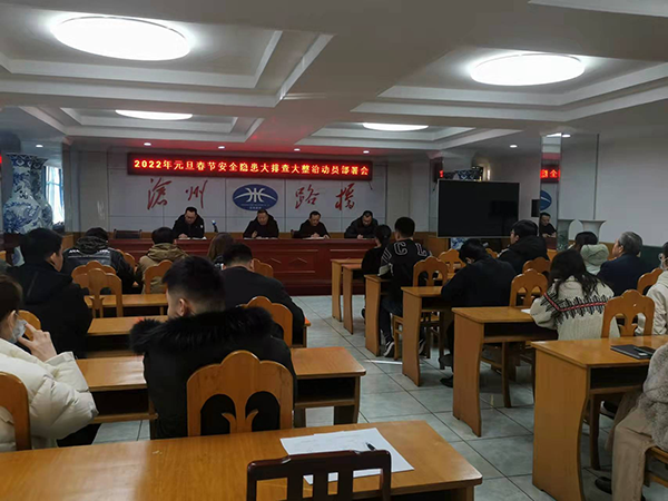 2021年12月30日下午14:30,路橋公司安委會組織召開2022年元旦春節(jié)安全隱患大排查大整治動員部署會,會上曹艷明總經(jīng)理傳達了集團下發(fā)的關(guān)于疫情防控、安全風(fēng)險隱患大排查大整治等文件精神,部署了《滄州路橋工程公司安委會2022年元旦春節(jié)期間安全生產(chǎn)風(fēng)險隱患大排查大整治行動方案》,要求各部門、子(分)公司積極落實相關(guān)責(zé)任,嚴(yán)格按行動方案中實施步驟完成各階段任務(wù)目標(biāo),杜絕各類生產(chǎn)安全事故發(fā)生。同時,還應(yīng)提高政治站位,進一步做好雙節(jié)期間疫情防控工作,規(guī)范來訪人員掃碼登記、嚴(yán)格執(zhí)行“領(lǐng)導(dǎo)帶班、雙人雙崗”值班制度,確保2022年元旦、春節(jié)、省市“兩會”、冬奧會、冬殘奧會和全國“兩會”期間公司安全生產(chǎn)形勢穩(wěn)定。