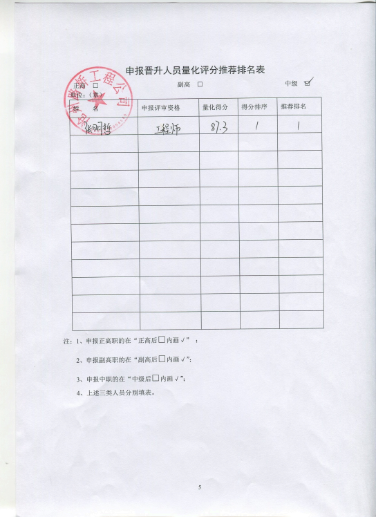 申報晉升人員量化評分推薦排名表