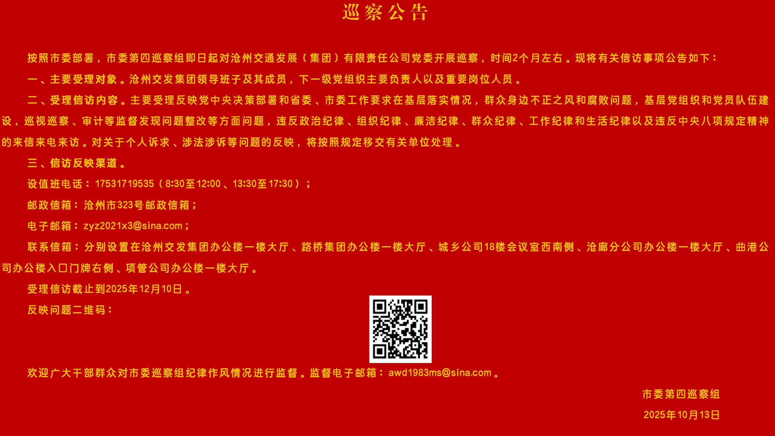 巡 察 公 告