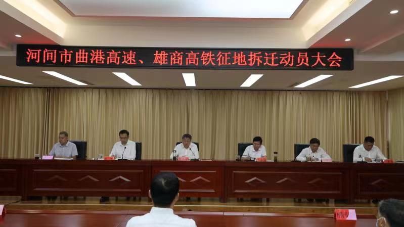 8月31日上午,滄州交發(fā)集團黨委書記、董事長劉俊德、副總經(jīng)理常志明出席河間市曲港高速、雄商高鐵征地拆遷工作動員大會,市領(lǐng)導(dǎo)王丙林、王剛、李憲、郭建友出席會議。會上,副市長郭建友就河間市曲港高速征遷補償方案進行了解讀。市交通局、公安局、供電公司、黎民居鄉(xiāng)、龍華店鄉(xiāng)南辛莊村、興村鎮(zhèn)龍關(guān)村分別就曲港高速、雄商高鐵征地拆遷工作進行了表態(tài)發(fā)言。