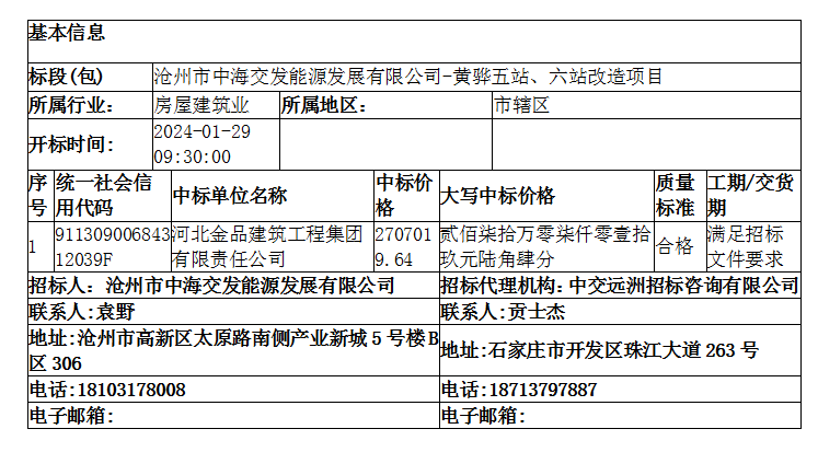 滄州市中海交發(fā)能源發(fā)展有限公司-黃驊五站、六站改造項(xiàng)目中標(biāo)公告