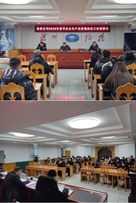 為全面做好2022年春節(jié)、“兩奧會(huì)”、“兩會(huì)”期間安全生產(chǎn)工作和疫情防控工作,1月28日上午,滄州路橋工程有限責(zé)任公司召開安全生產(chǎn)工作及疫情防控部署會(huì),曹艷明董事長首先組織學(xué)習(xí)了河北省高級(jí)人民法院、河北省人民檢察院、河北省公安廳《關(guān)于依法從嚴(yán)查處妨害疫情防控違法犯罪行為的通告》,要求全體員工切實(shí)提高思想站位,遵守通告要求,履行疫情防控責(zé)任,隨后傳達(dá)了《全市“迎冬奧保春節(jié)兩會(huì)”安全生產(chǎn)攻堅(jiān)行動(dòng)方案》、《河北省環(huán)境信息依法披露制度改革實(shí)施方案》、集團(tuán)《關(guān)于做好2022年春運(yùn)和冬奧會(huì)期間安全保暢和疫情防控工作的通知》及《滄州路橋工程有限責(zé)任公司2022年春節(jié)期間安全生產(chǎn)和疫情防控工作部署》。
