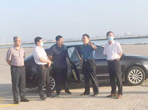 2021年8月17日交發(fā)集團黨委委員、紀(jì)委書記許英杰、綜合管理部負責(zé)人王寶才到黃驊港綜合港區(qū)液體化工碼頭項目調(diào)研。許書記強調(diào),要扎實推進項目前期工作,加強廉政教育建設(shè),以陽光廉潔優(yōu)質(zhì)的交通環(huán)境為推動黃驊港綜合港區(qū)液體化工碼頭項目建設(shè)提供堅實保障。在實地調(diào)研了本項目及相鄰的泰地化工碼頭后,許書記指出液化碼頭項目是集團“1+N”發(fā)展戰(zhàn)略邁出的堅實一步,森旭港務(wù)公司要按照“兩轉(zhuǎn)兩促三思考”思想大討論實干大行動活動安排,扎實推進項目前期工作,為加快項目建設(shè)、打造集團“以路為基、多元發(fā)展、創(chuàng)新驅(qū)動、產(chǎn)融協(xié)同的1+N”戰(zhàn)略發(fā)展格局做出更大的貢獻。