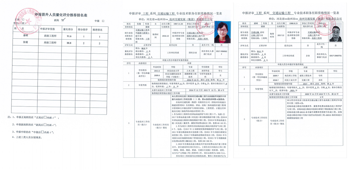 交發(fā)集團申報晉升人員量化評分推薦排名表