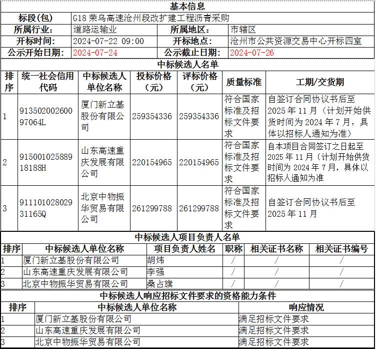 G18榮烏高速滄州段改擴(kuò)建工程瀝青采購