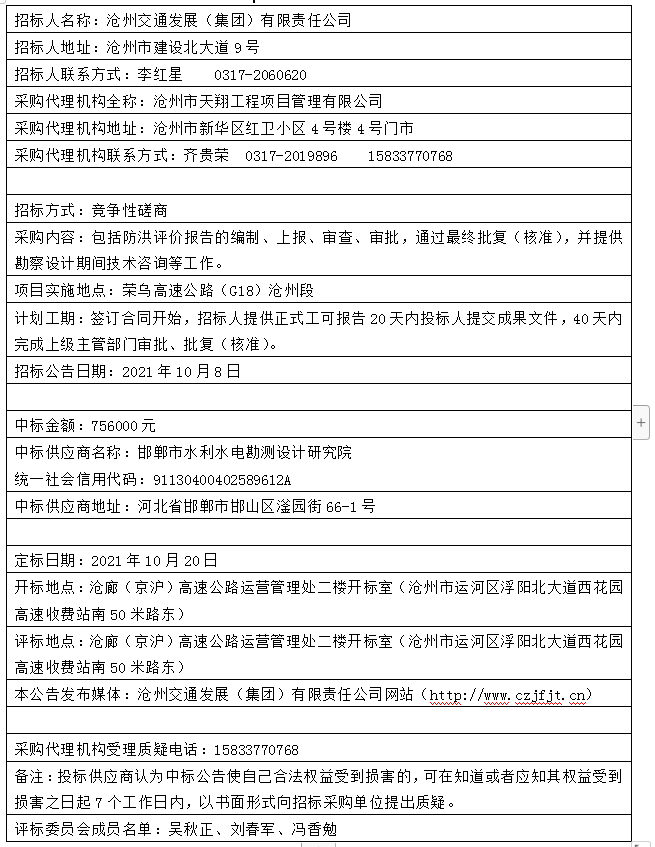 招標(biāo)項(xiàng)目名稱:榮烏高速公路(G18)滄州段改擴(kuò)建工程防洪評(píng)價(jià)編制單位采購(gòu)
