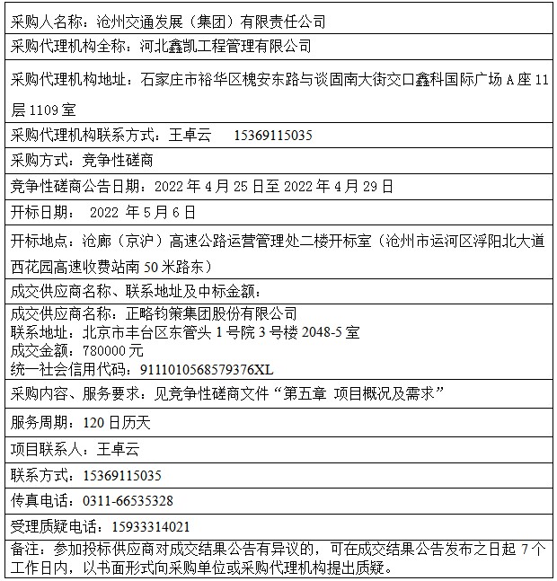 滄州交通發(fā)展(集團(tuán))有限公司企業(yè)內(nèi)部控制及風(fēng)險控制咨詢成交結(jié)果公告