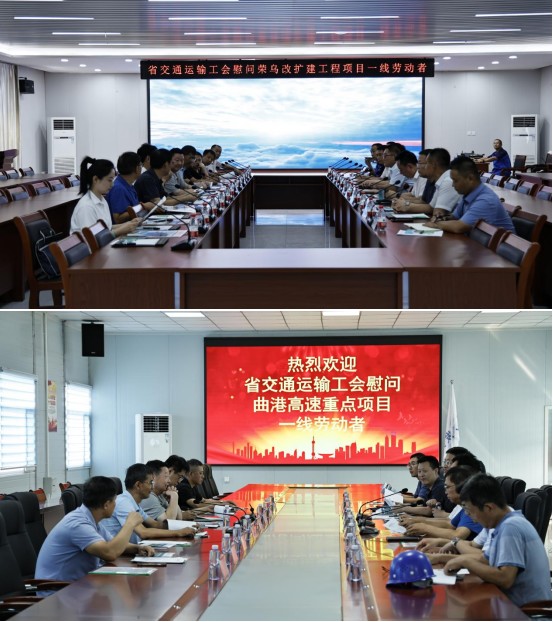 2024年8月14日,河北省交通運(yùn)輸工會主任魏武、副主任朱麒、任曉亮一行三人到滄州交通發(fā)展(集團(tuán))有限責(zé)任公司榮烏高速改擴(kuò)建項(xiàng)目、曲港高速公路重點(diǎn)工程勞動競賽項(xiàng)目慰問一線干部職工。市交通運(yùn)輸局副局長王鳳廣,局直黨委專職副書記、四級調(diào)研員張玉增,交發(fā)集團(tuán)黨委副書記、工會主席楊鴻博,黨委委員、副總經(jīng)理常志明陪同。