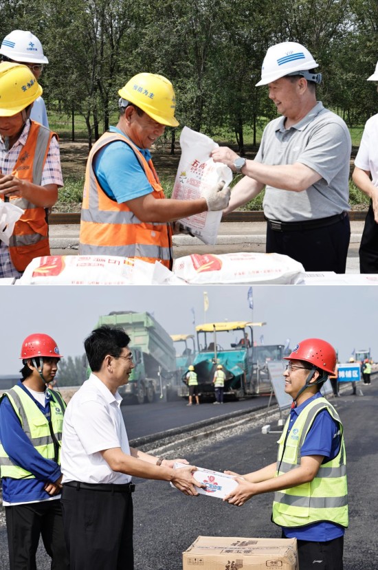慰問組先后到榮烏高速改擴(kuò)建一分部和曲港八標(biāo)段施工現(xiàn)場,詳細(xì)了解工程進(jìn)度和勞動競賽開展情況,看望慰問一線干部職工,并送來礦泉水、方便面、火腿腸、大米、面粉、食用油等慰問品,給基層一線干部職工帶來了河北省交通運(yùn)輸工會的關(guān)心和關(guān)愛。慰問組對滄州交發(fā)集團(tuán)一線職工認(rèn)真履職盡責(zé),勇于擔(dān)當(dāng)作為給予充分肯定,對項(xiàng)目工程進(jìn)度給予高度認(rèn)可,并叮囑在作業(yè)場所要按規(guī)定配備職業(yè)防護(hù)設(shè)施,在做好職工安全防護(hù)的同時做好后勤保障,落實(shí)好防暑降溫、飲食衛(wèi)生、安全生產(chǎn)等工作,鼓勵職工繼續(xù)發(fā)揚(yáng)勞模精神、勞動精神、工匠精神,積極投身項(xiàng)目建設(shè)。