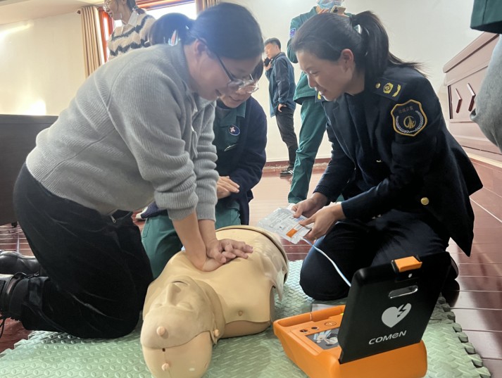 滄州市人民醫(yī)院急救中心護士長楊慧及其團隊?wèi){借豐富的臨床經(jīng)驗和專業(yè)知識,為大家講解了判斷心肺復(fù)蘇和氣道異物梗阻的關(guān)鍵要點和注意事項。通過生動的案例和實際操作演示,讓職工直觀地理解和掌握心肺復(fù)蘇和海姆立克急救的全過程,確保職工們能準(zhǔn)確、高效地運用該方法應(yīng)對緊急情況。